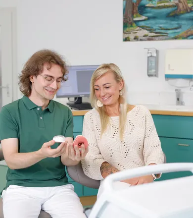 Auch im Erwachsenenalter stehen häufig medizinische oder prothetische Notwendigkeiten im Vordergrund. Ziel ist nicht nur ein schönes Ergebnis, sondern vor allem ein stabiles, funktionell einwandfreies Gebiss.